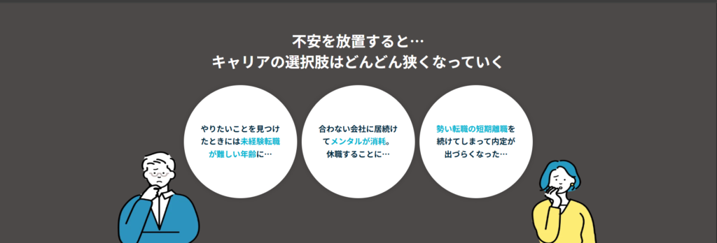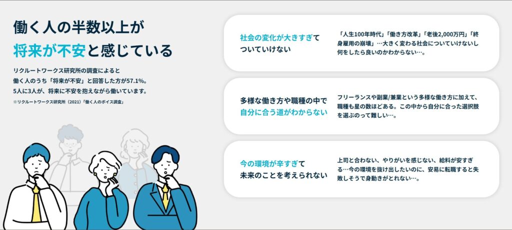 キャリアの迷いを具体的な行動へつなげていくサービスです。